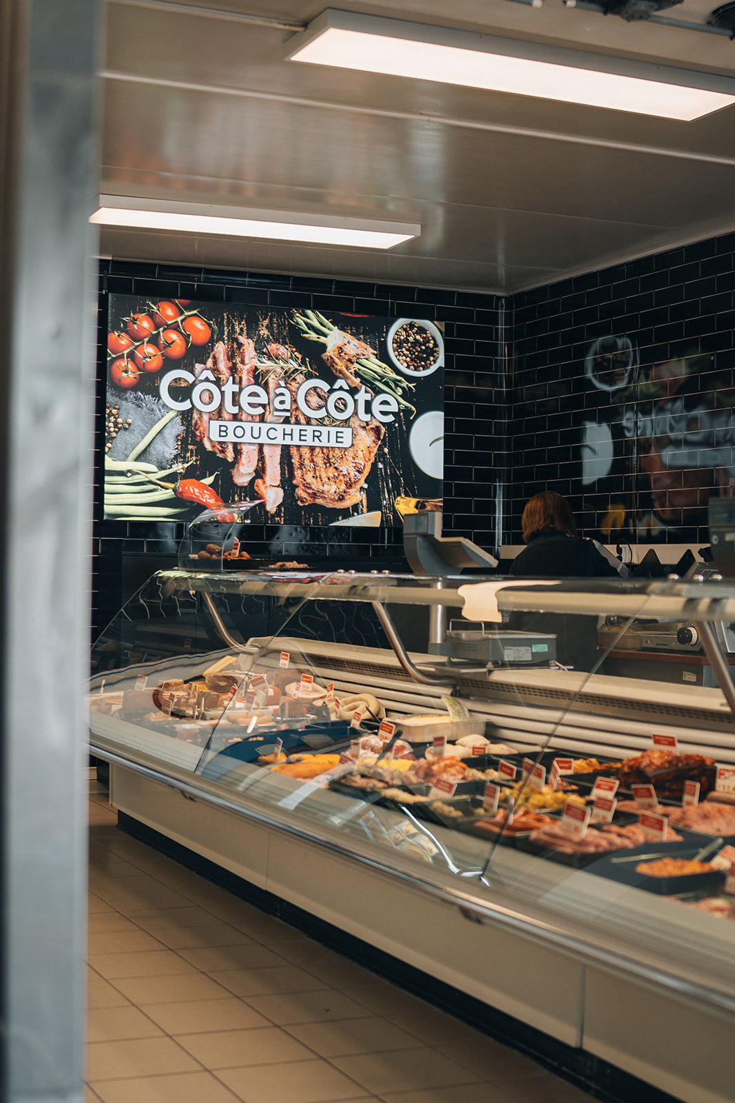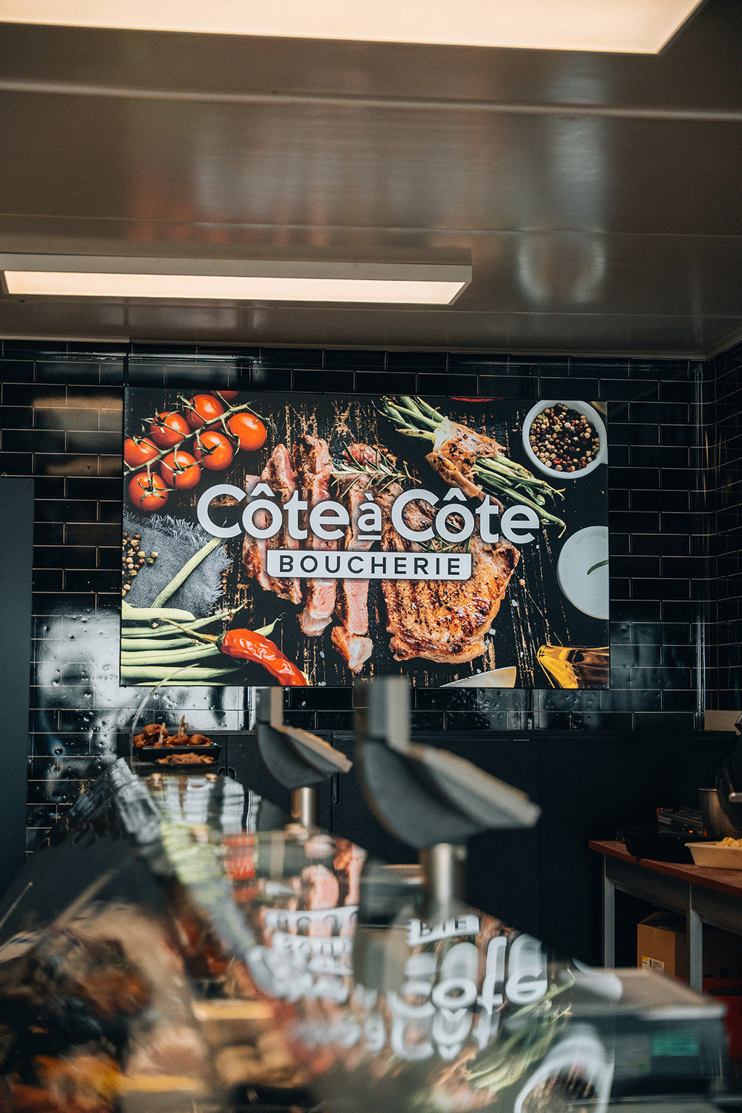 Chez Côte à Côte, on met la main à la pâte tous les jours. Toutes nos préparations sont faites maison, dans notre atelier : haché pur bœuf, américain nature ou préparé, brochettes, saucisses, plats traiteurs…